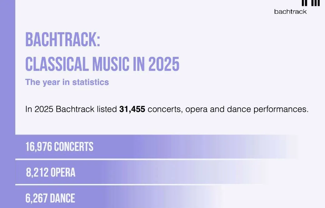 In what has been a dizzyingly eventful year, the classical music world continues to alter and transform in its own way. Bachtrack’s listings – of 31,455 distinct concert, opera and dance events – comprise the largest available snapshot of this world of live performance. It promises valuable insight into what orchestras, opera houses and dance companies are offering worldwide. Analysing this data, and looking back on 2025, what conclusions can we draw?