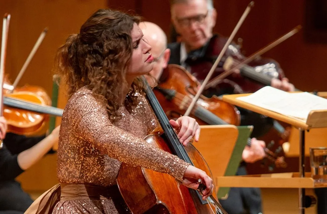 Julia Hagen, nació y estudió en Salzburgo, escuchando la orquesta que en esta velada le acompañaba. Nos ofreció un Allegro, ágil, liviano, que aún tenía las reminiscencias clásicas de la obertura de La flauta mágica que acabábamos de escuchar. La entrada del violonchelo pudo haber sido más convincente, pues demostró más adelante que tiene el suficiente dominio del instrumento como para poder darle un sonido más potente —más violento, diría, incluso— sin perder un ápice de calidad.
