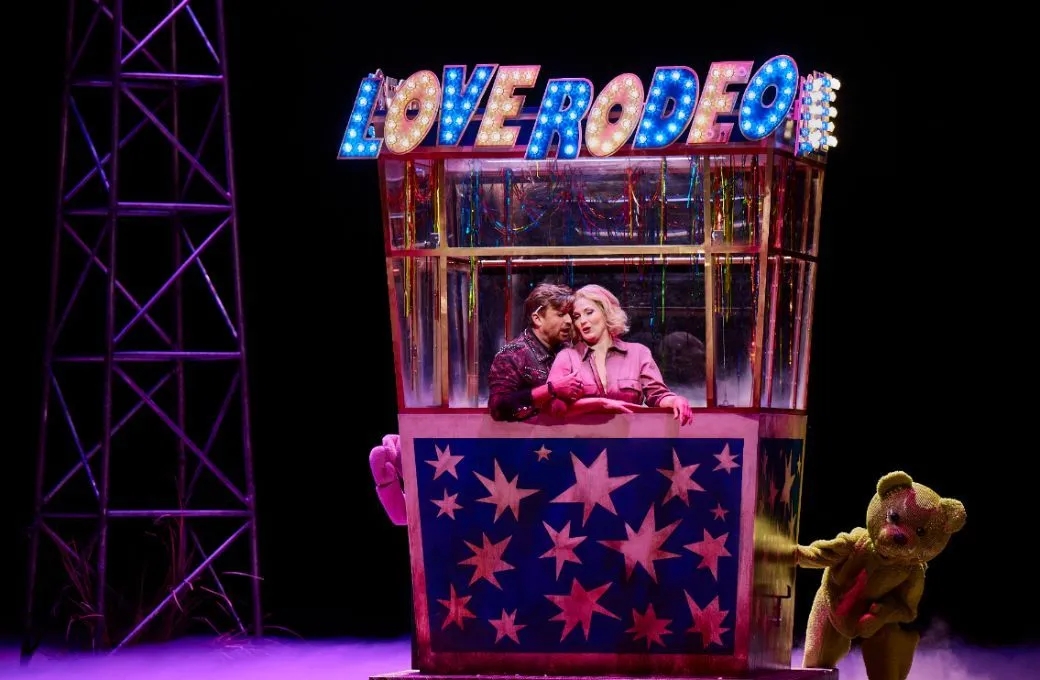 Früher Morgennebel wabert über die Bühne und aus dem Dunst tritt ein abgehalfterter Ticketschalter hervor. „Love Rodeo“ prangt in flackernder Leuchtschrift über dem gläsernen Häuschen, wo Mařenka im feschen Overall noch schnell ein paar defekte Glühbirnen tauschen muss, bevor am Nachmittag die große Show beginnt. Statt im böhmischen Dorfidyll steigt die Handlung direkt im Wurstelprater ein.