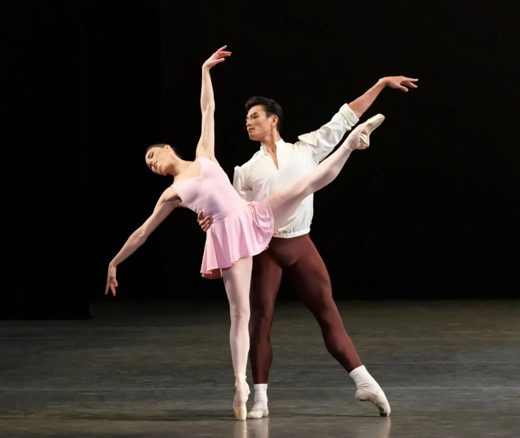 The timeless grandeur of Theme and Variations is unmatched by the three swoony prequels which Balanchine tacked on in 1970 after a gap of 23 years. Behind a scrim that produced a hazy, underwater effect, men in ruffled blouses pined after barelegged women draped in long layers of glittery diaphanous tulle, who flung their hair about beautifully, none more so than the willowy Miriam Miller who had a thing with Ryan Tomash but ultimately abandoned him. Emilie Gerrity stalked Preston Chamblee with a sinister smile. The ‘Scherzo’ was mainly a lot of tearing around, but Daniel Ulbricht dialed up the manège to stirring effect and among the ensemble Olivia Bell conveyed a sense of urgency while dashing from pillar to post.