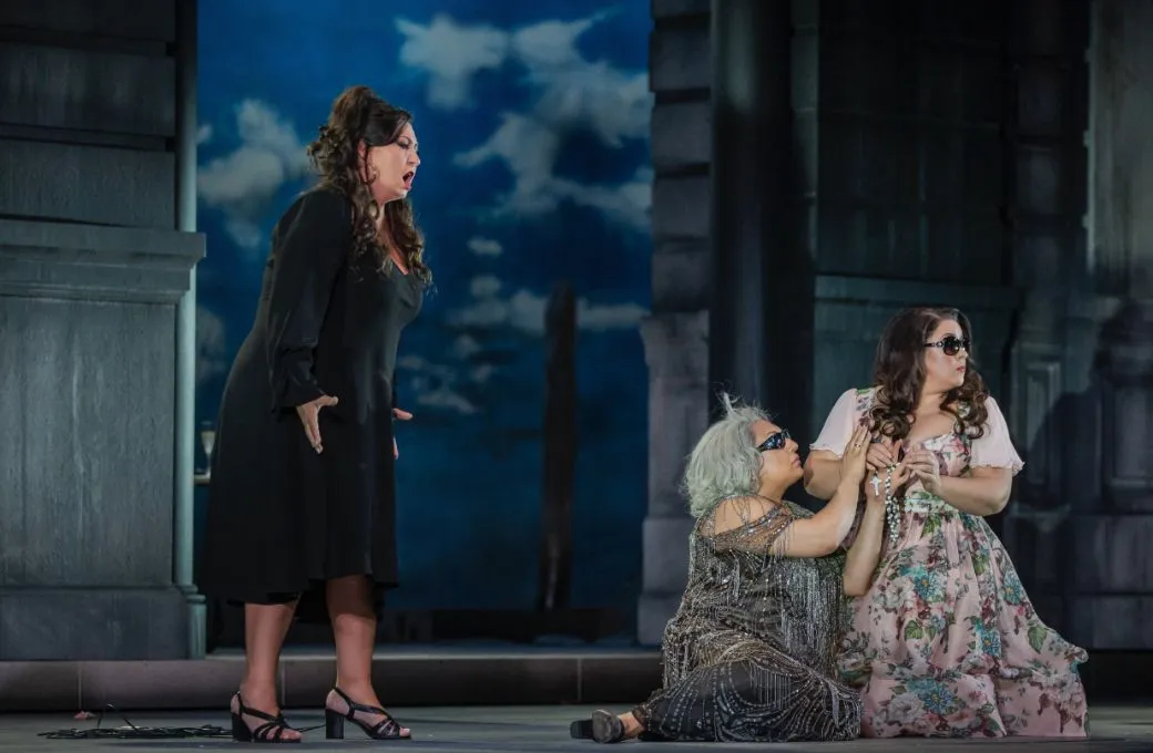 Le plateau vocal est très homogène, bien soutenu par un orchestre invisible en fosse mais renforcé par l’acoustique heureuse de ce lieu dédié à l’opéra, le tout sous la baguette d’un Fabrizio Ventura énergique. Le rendu est très puissant, mais plus ou moins réussi d’un personnage à l’autre au regard de l’action. Côté féminin, on assiste à un sans-faute. Dans le rôle-titre, Anna Pirozzi double sa performance vocale d’une performance scénique, la grande palette de nuances mobilisées coïncidant à propos aux différentes situations d’énonciation : tendresse envers sa mère, affection pour Enzo, puis colère, le dégoût étant réservé à Barnaba. Alisa Kolosova (Laura) est aussi extrêmement solide, même dans des positions parfois peu confortables, le duo féminin étant parfois tellement proche qu’on pourrait confondre leurs voix. Enfin, Anita Rachvelishvili (La Cieca) ravit le public, en particulier dans son registre grave, très impressionnant et cuivré.