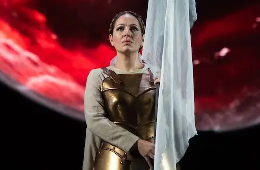 Director Davide Livermore was faced with this question and tried to give a personal, congruous reply. Admittedly, his main concern was to highlight the duality of Giovanna’s nature: the young woman’s conflict operates at a deep level where her resolution to fight for her country clashes with her feelings for King Carlo VII. Fighting on the same side as her love interest, Giovanna’s inner struggle is not political but rather caused by some sort of gender disconnection which – predictably, from a male perspective – asserts the incompatibility of womanhood and militancy.