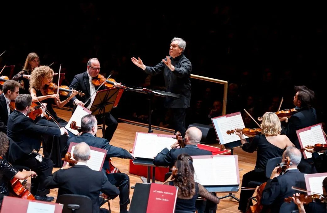 The concert started with the Mozart, posthumously nicknamed Jupiter as it seems to celebrate a pagan god, one made of light and unstoppable vital force. Pappano directed his Santa Cecilia forces with confidence and attention to detail throughout its four movements. In the Allegro vivace he effectively handled the sudden swing from the pianissimo of the string melody to the fortissimo of the orchestra at full force. The start of the Andante cantabile was emphatically slow, while he highlighted the classical perfection of the Minuet. The Molto allegro finale overwhelemed with its energy.