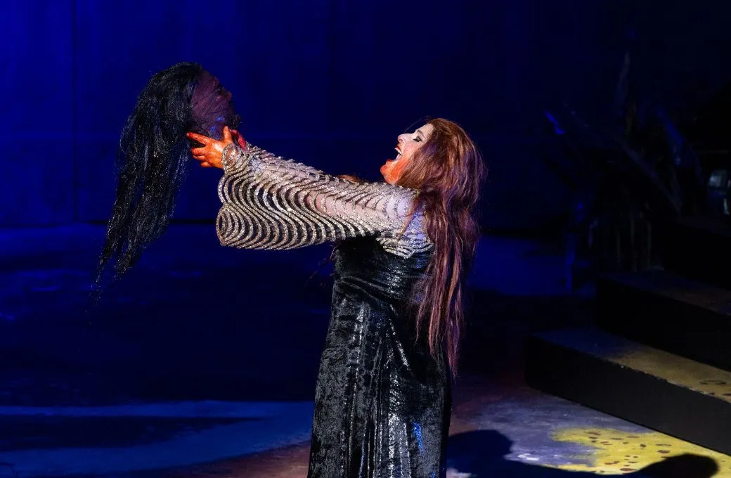 Merbeth herself, accompanied by seven dancers, performed the infamous Dance of the Seven Veils. Her demand for Jochanaan’s head followed, accompanied by the ominous plucking of the basses. The climax was harrowing, with Salome embracing the severed head, her garment stained with blood, before delivering her twisted kiss.
