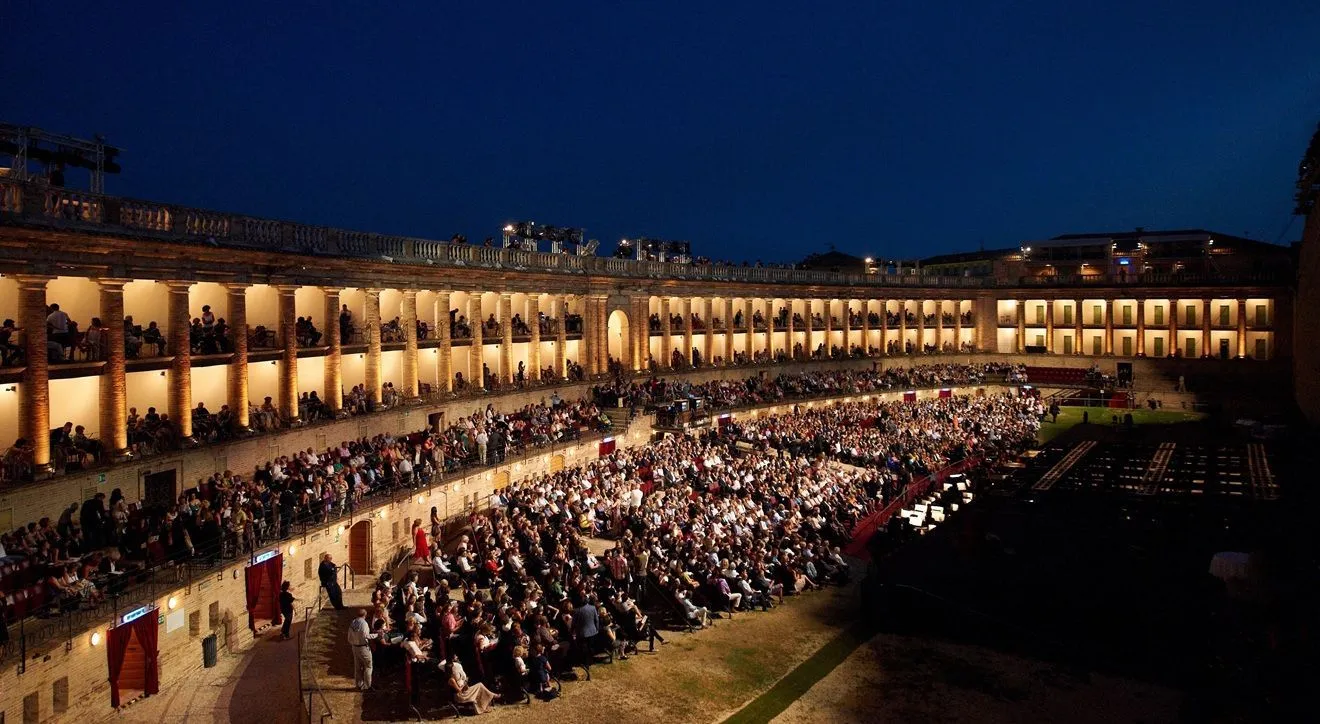 The festival takes place in Macerata, a historic hilltop city in central Italy’s Marche region, about 50 kilometres south of Ancona. Performances are held at the Sferisterio, a monumental open-air neoclassical theatre built between 1823 and 1829 and serving as the home of the Macerata Opera Festival since 1967. With a capacity of around 2,500 seats and renowned natural acoustics, it is considered one of Italy’s most remarkable open-air opera venues.