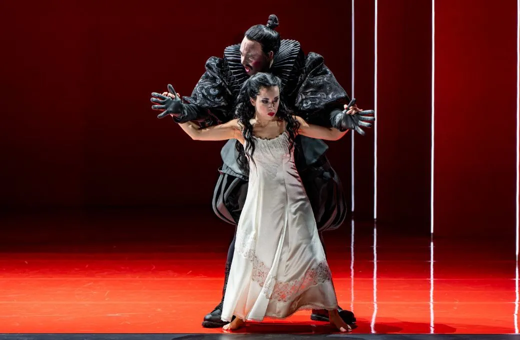 Iain MacNeil assoit son personnage avec une assurance à toutes épreuves, de son baryton-Verdi idéal, proche du ténor, clair et altier, à la projection souveraine et égale. Quelle voix ! En revanche, si l’on reste bouché bée devant l’énergie scénique déployée par Heather Engebretson (l’art martial qu’elle invente lors de son premier air !), sa voix, excepté sur les suraigus, ne nous touchera pas toujours autant, par manque d’appui dans les registres grave et medium et un timbre parfois un peu métallique.