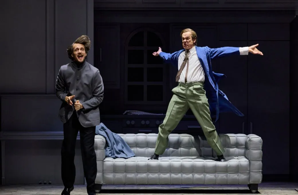 Matthias Klink als Gabriel von Eisenstein ist in dieser Inszenierung nicht wie üblich der große Frauenheld, sondern eine durch unmäßigen Champagner-Konsum zunehmend bemitleidenswerte Figur. Der Dr. Falke von Yannik Debus kommt etwas gar weich und sensibel daher und eignet sich als Drahtzieher und Rächer des Geschehens nicht wirklich. Der Tenor Andrew Owens als Musiker Frank wäre von seinem Stimmfach her eigentlich als Rosalindes Liebhaber prädestiniert, wird aber von der Regie in dieser Funktion etwas zurückgebunden. Ruben Drole gibt den Gefängnisdirektor Frank als erfrischend komische Figur. Eine strahlende Erscheinung ist die Schweizer Sopranistin Regula Mühlemann als Adele, die mit ihrer hellen Stimme und ihrem jugendlich-kecken Temperament für einige Glanzpunkte sorgt. Und Marina Viotti schält den nonbinären Charakter des Prinzen Orlofsky mit größtem Vergnügen heraus.