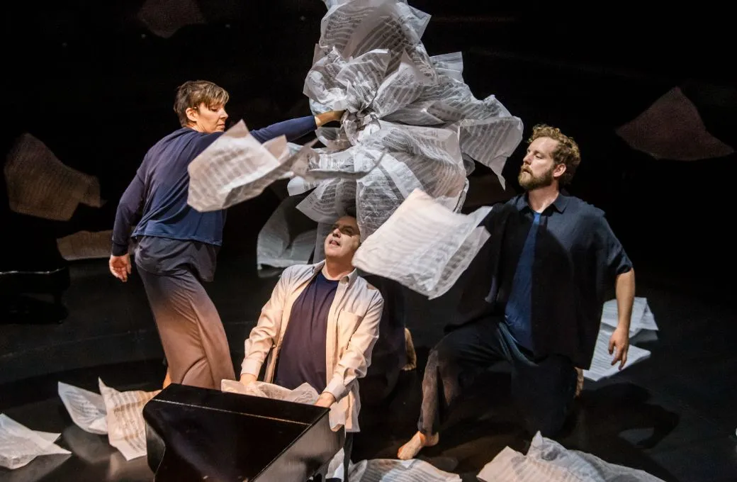 The next set of workshops in New York was a mad dash of creativity. McDermott had been told beforehand that the 82-year-old might only be able to do an hour or so each time, but on the first day, Glass burst into the room and said, “Come on, we’ve gotta get going! I’ve got lots to do – I’m doing King Lear! [Glenda Jackson’s recent Broadway production]”. So McDermott acted out the various stories he’d been working on whilst Glass sat at the piano – and by the end of the week the composer had produced ten pieces of music. The session was taped, and incredibly, the next time McDermott saw Glass, he had orchestrated them for a small ensemble of percussion, cello, violin, clarinet and piano.